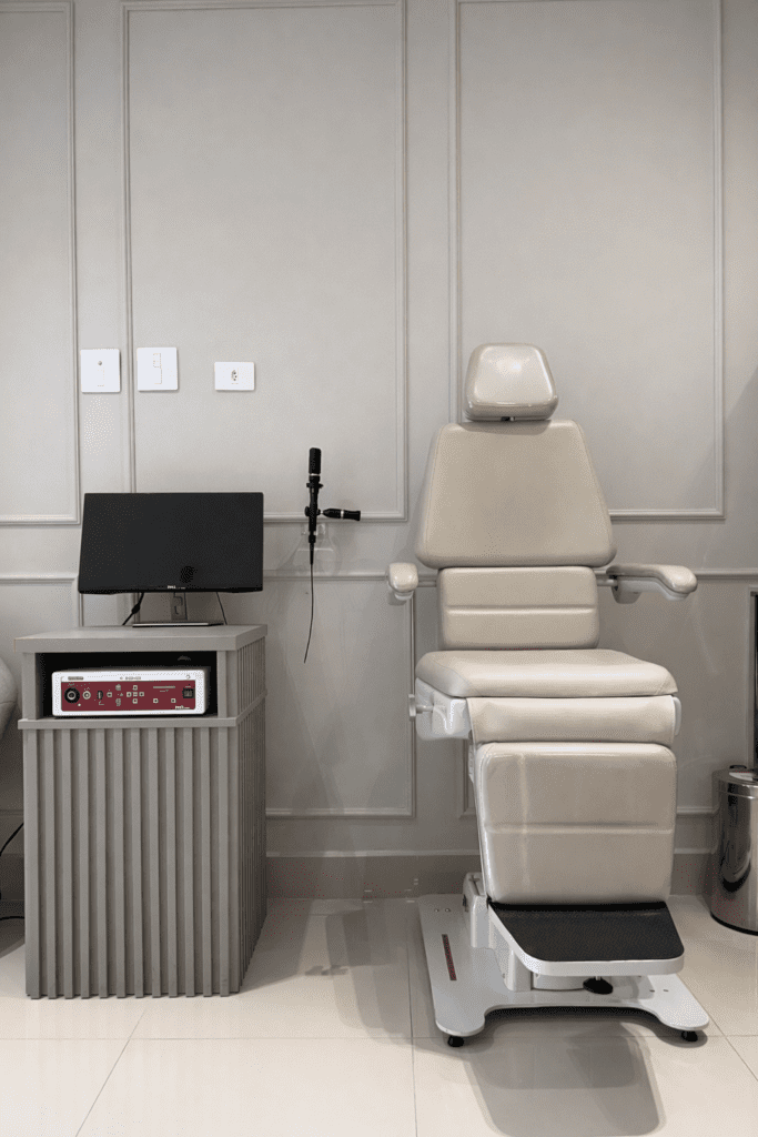 A nasofibrolaringoscopia é um exame endoscópico realizado no próprio consultório para avaliar de forma detalhada as estruturas do nariz, garganta e laringe.